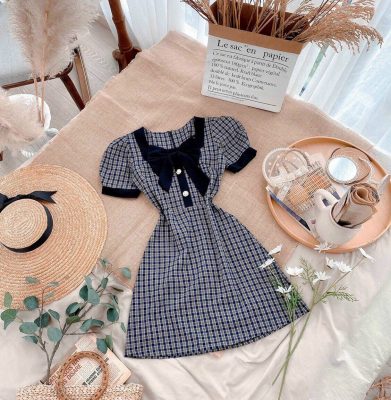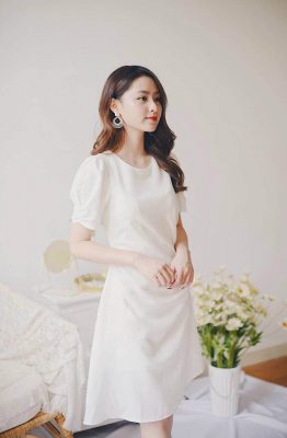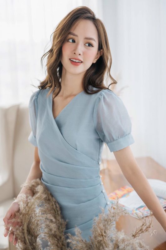 [Hàng có sẵn] – Đầm hoa màu xanh cổ điển với tay áo phồng mảnh mai – size: S, M