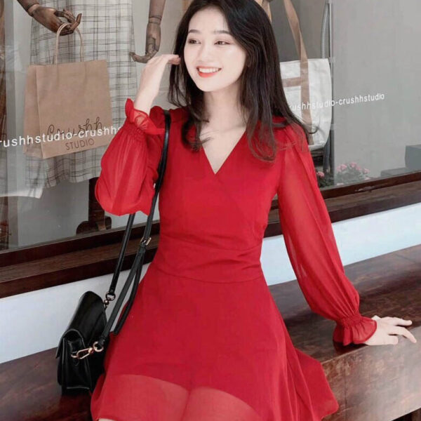[Hàng có sẵn] – Đầm cổ chữ V nàng tiên cá màu tím form chữ A mỏng size S,M