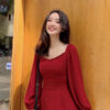 [Hàng có sẵn] – Đầm tiểu thư phong cách mới cổ điển Hàn Quốc,tươi mát với tay áo phồng, ngực xếp ly