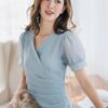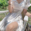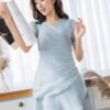 [Hàng có sẵn] – Đầm tiểu thư phong cách mới cổ điển Hàn Quốc,tươi mát với tay áo phồng, ngực xếp ly